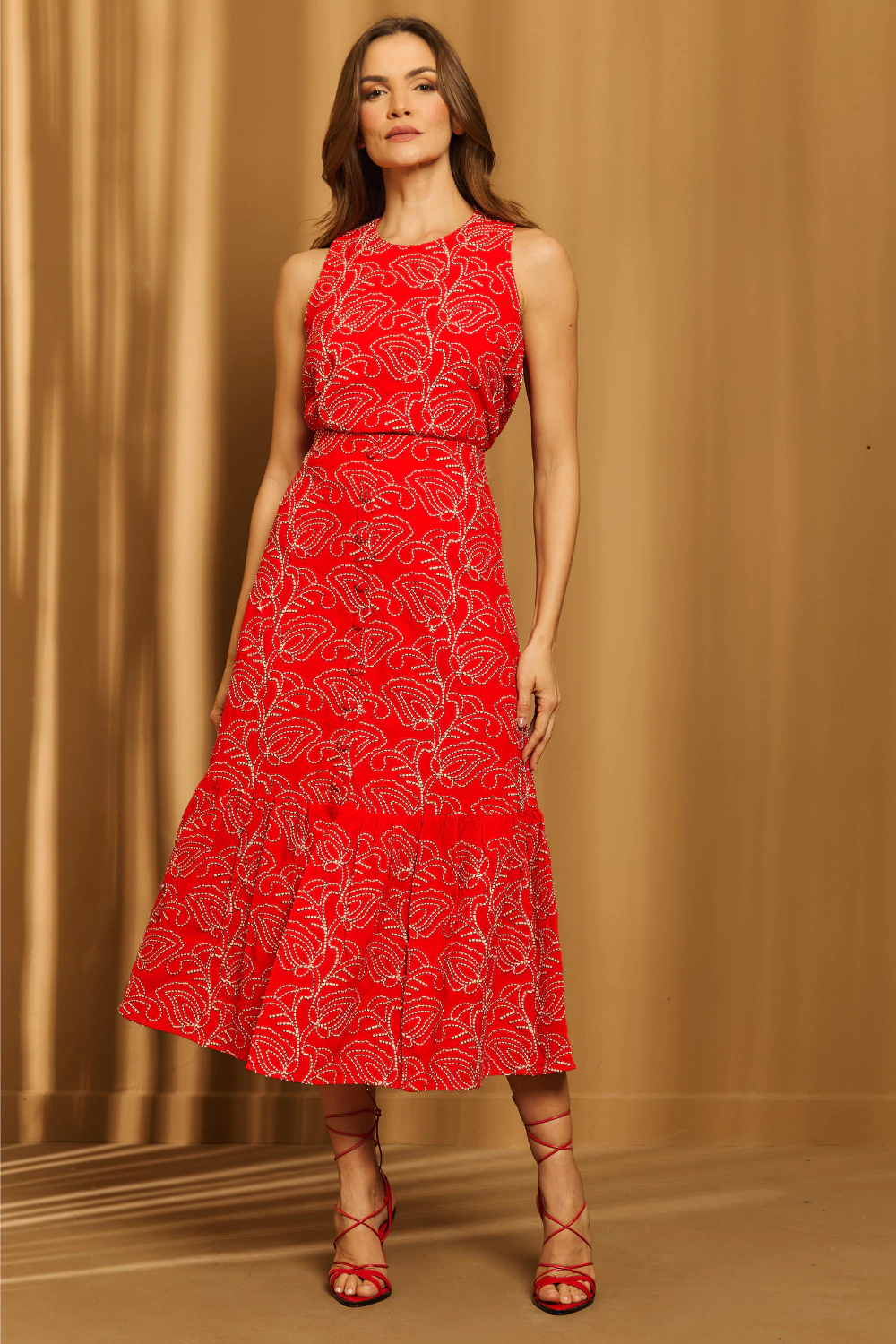 Aposte em sandálias de salto bloco ou rasteiras sofisticadas para valorizar o caimento da peça
